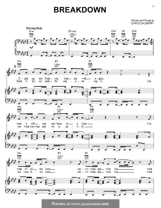 Breakdown (Daughtry) by C. Daughtry - sheet music on MusicaNeo