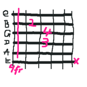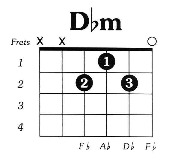 Dbm Guitar Chord. Picture of a Dbm guitar chord.