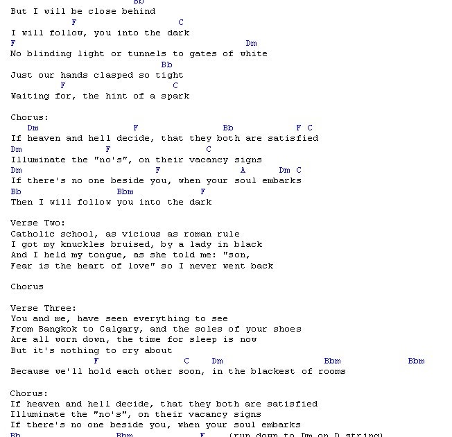 I Will Follow You Into The Dark Guitar Tutorial - Chords