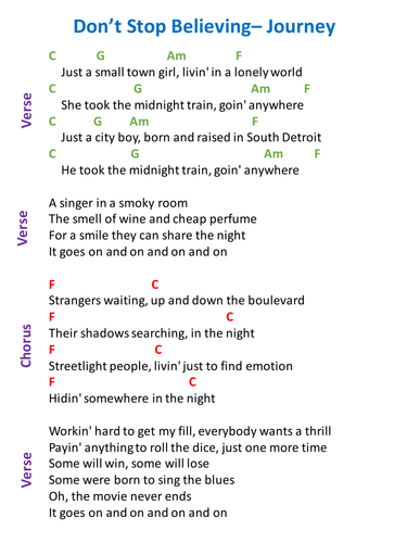 Don't Stop Believin' by Journey - Guitar Chords/Lyrics