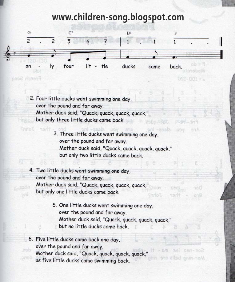 Five Little Ducks Song with Notes and Chords
