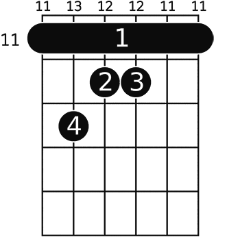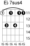 E-flat major 7th add 13 guitar chord - GtrLib Chords