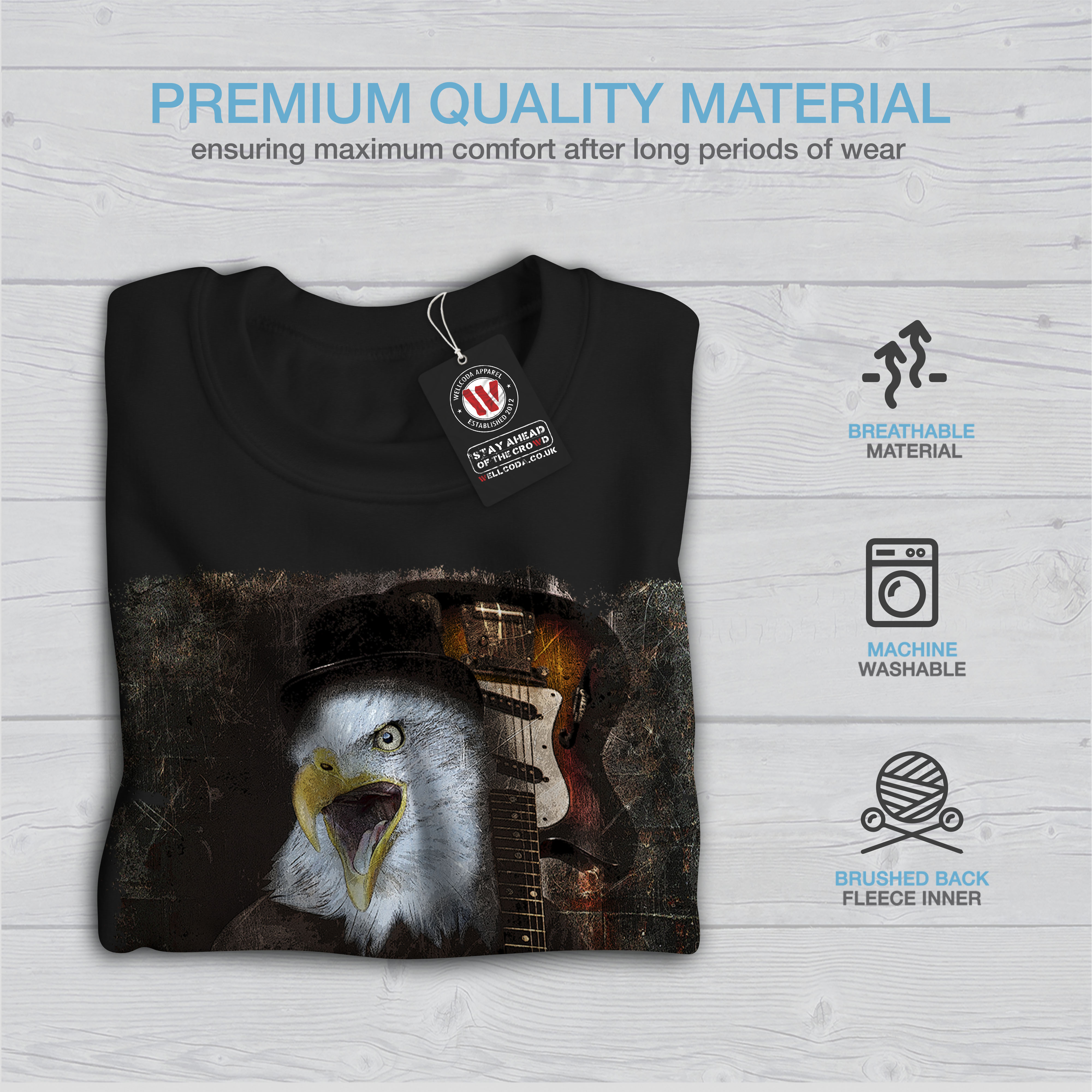 Wellcoda Eagle Rock Guitar Music Mens Sweatshirt, Bird