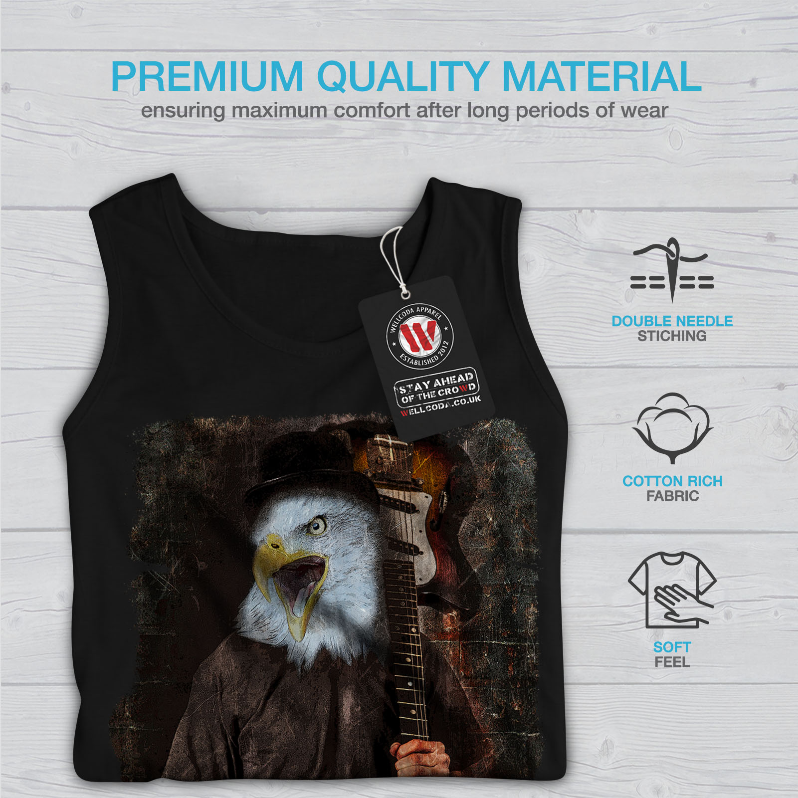 Wellcoda Eagle Rock Guitar Music Mens Tank Top, Bird