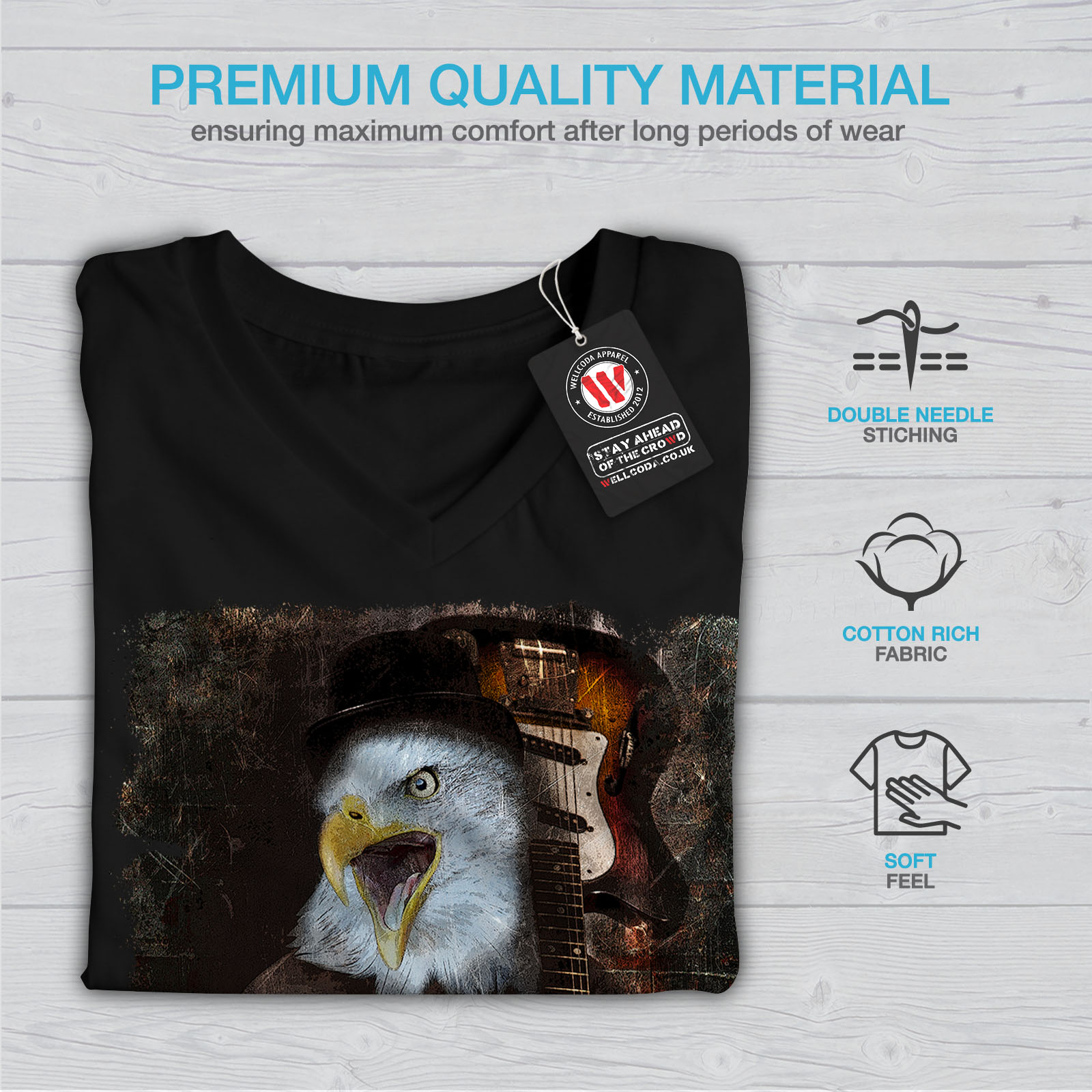 Wellcoda Eagle Rock Guitar Music Womens V-Neck T-shirt