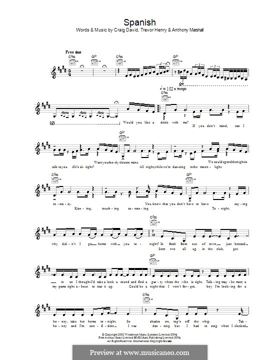 Spanish (Craig David) by A. Marshall, T. Henry - sheet