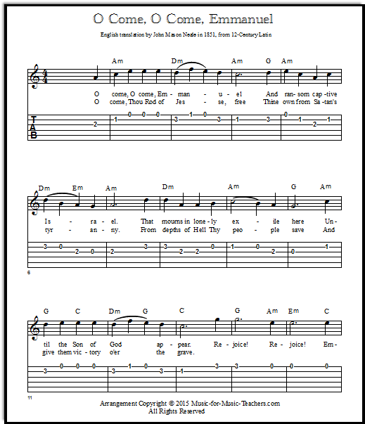 O Come, O Come Emmanuel: Chords, Sheet Music, and Tab for