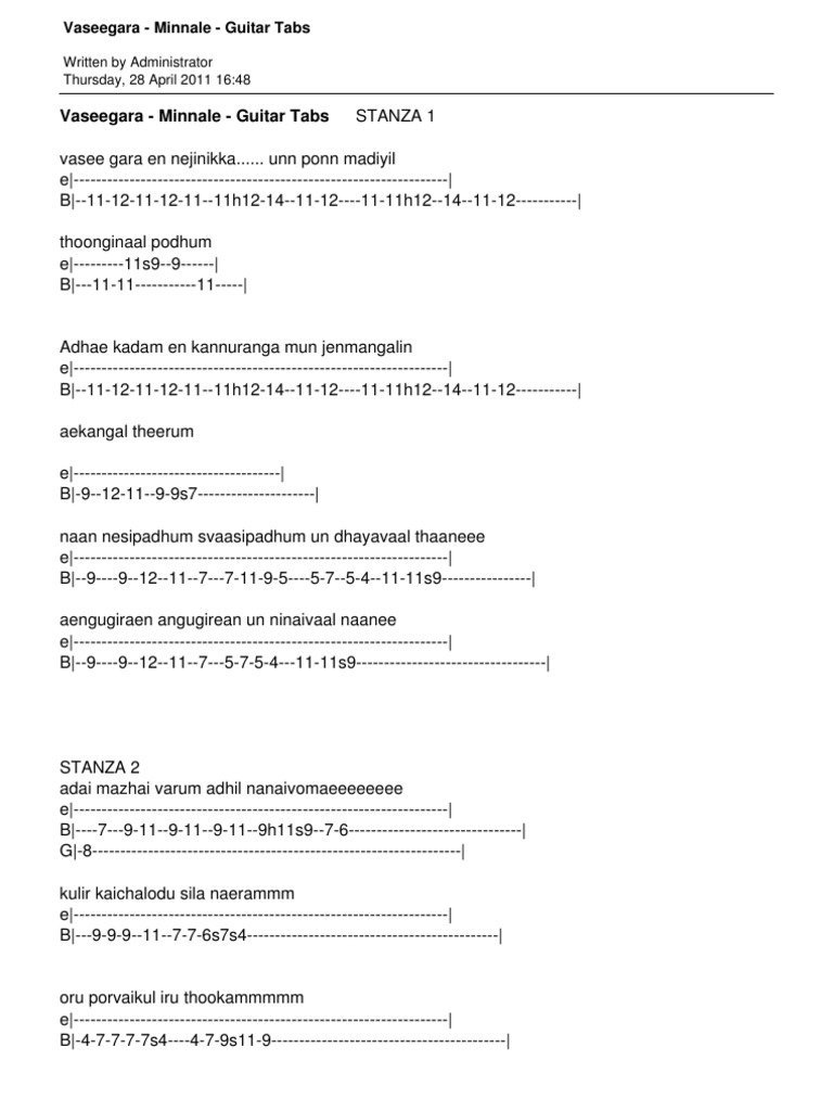 Vaseegara Minnale Guitar Tabs