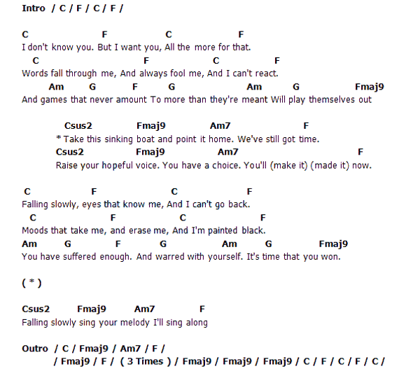 POLYGON 結他CHORD: Falling slowly [guitar tab]
