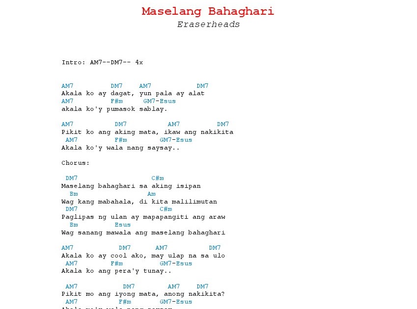 ERASERHEADS - MASELANG BAHAGHARI lyrics w/ guitar chords