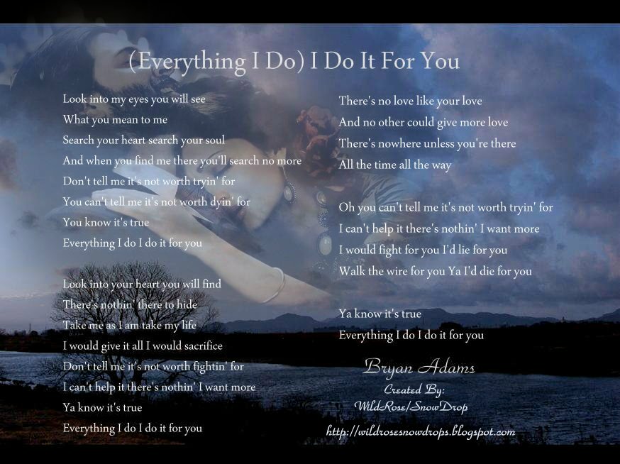 Love Song Lyrics for:Everything I Do, I Do It For You
