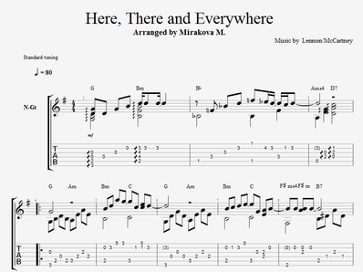 Here, There and Everywhere on guitar. Sheet music and tabs