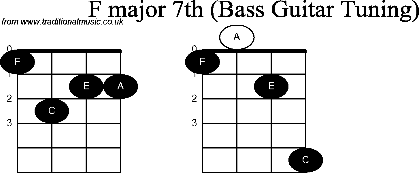 Chord diagrams for Dropped D Guitar(DADGBE), F Major7th