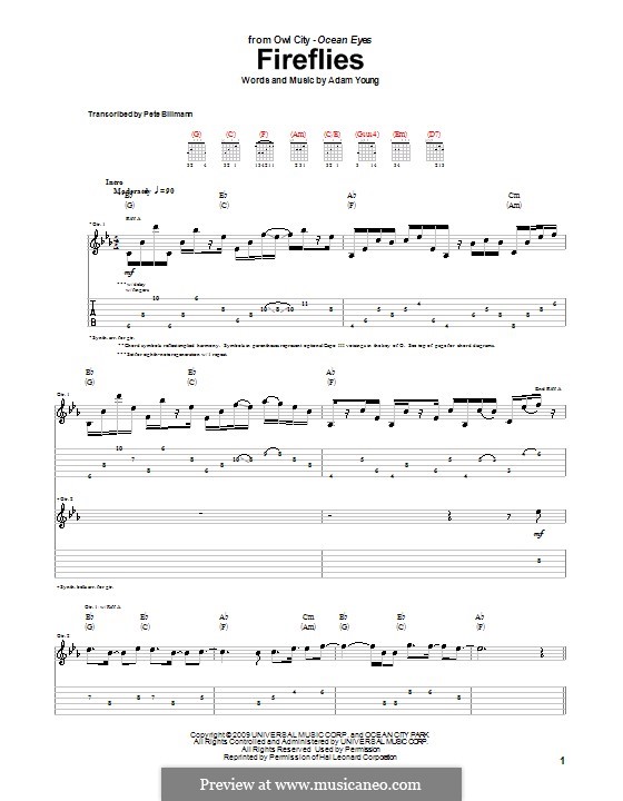 Owl City "Fireflies" Guitar Tab - Download & Print