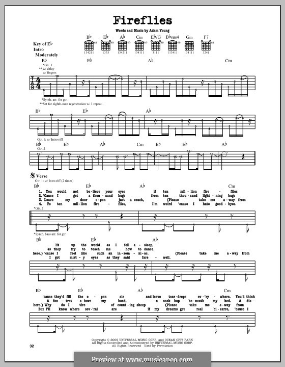 Fireflies by Owl City - Guitar Lead Sheet - Guitar Instructor