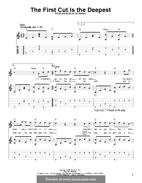 The First Cut Is The Deepest by Cat Stevens - Guitar Tab