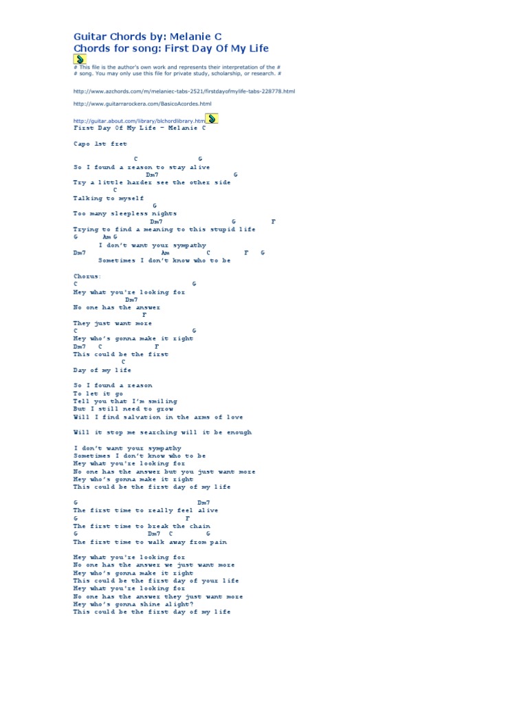Guitar Chords by: Melanie C Chords for song: First Day Of