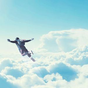 Boy Is Flying Away And Holding Pigeons, Fly In The Dream