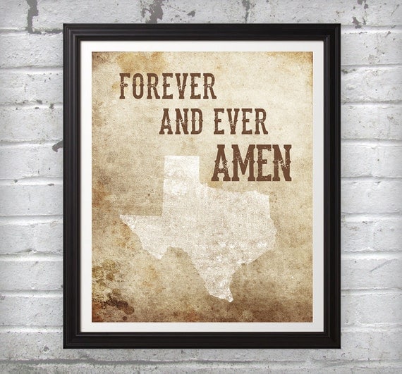 Forever and Ever Amen Texas Brown Art Print Wall Art Home