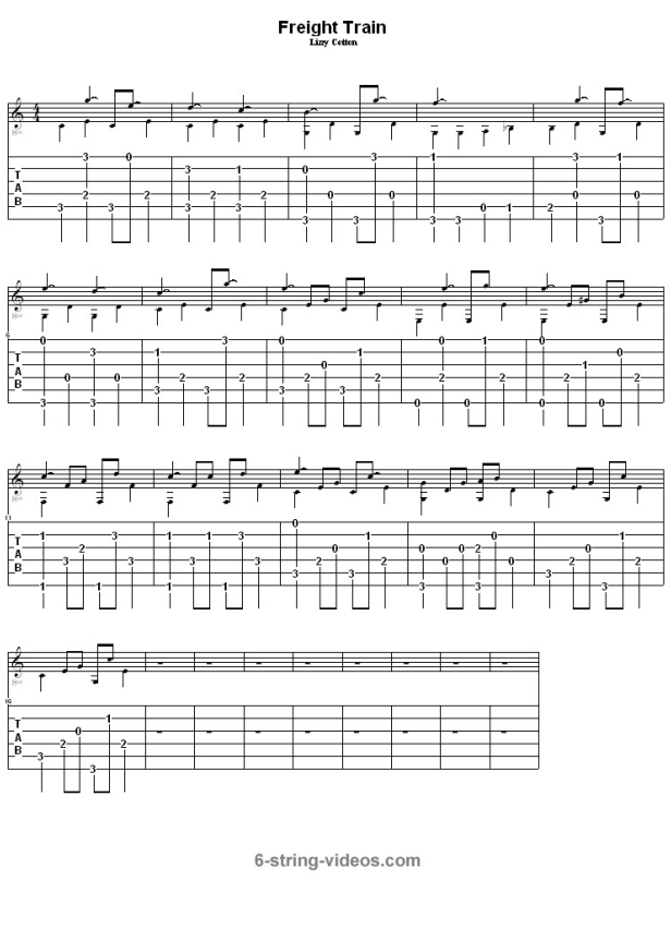 Freight Train - Solo Guitar Tab | FreeWheelinGuitar.com