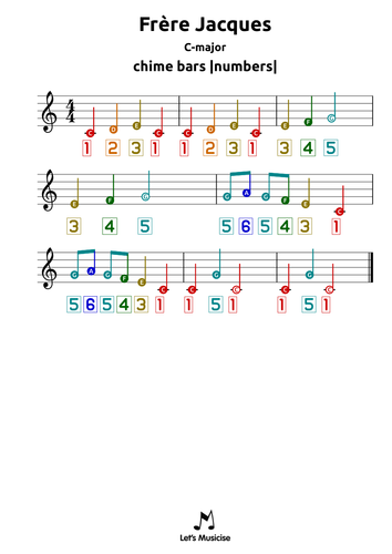 Frere Jacques |C| set of tabs for chime bars, harmonica