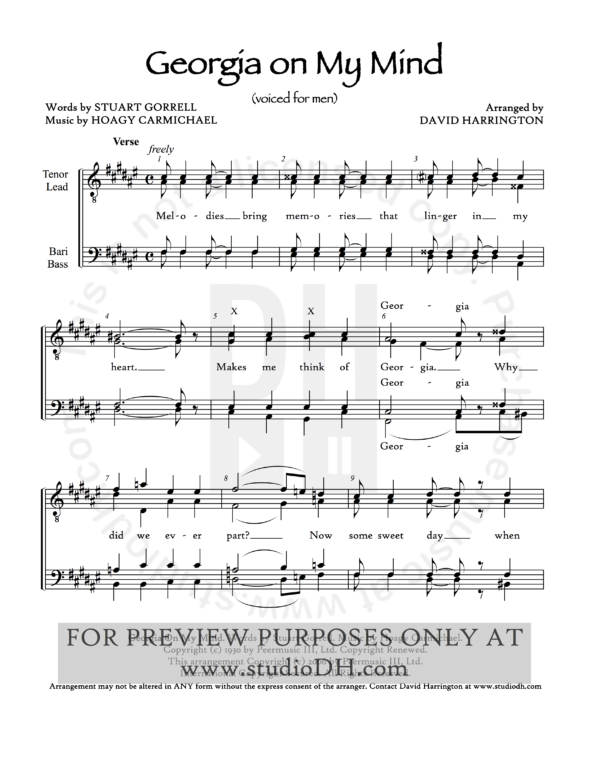 “Georgia On My Mind” – men’s 4-part chart – studioDH
