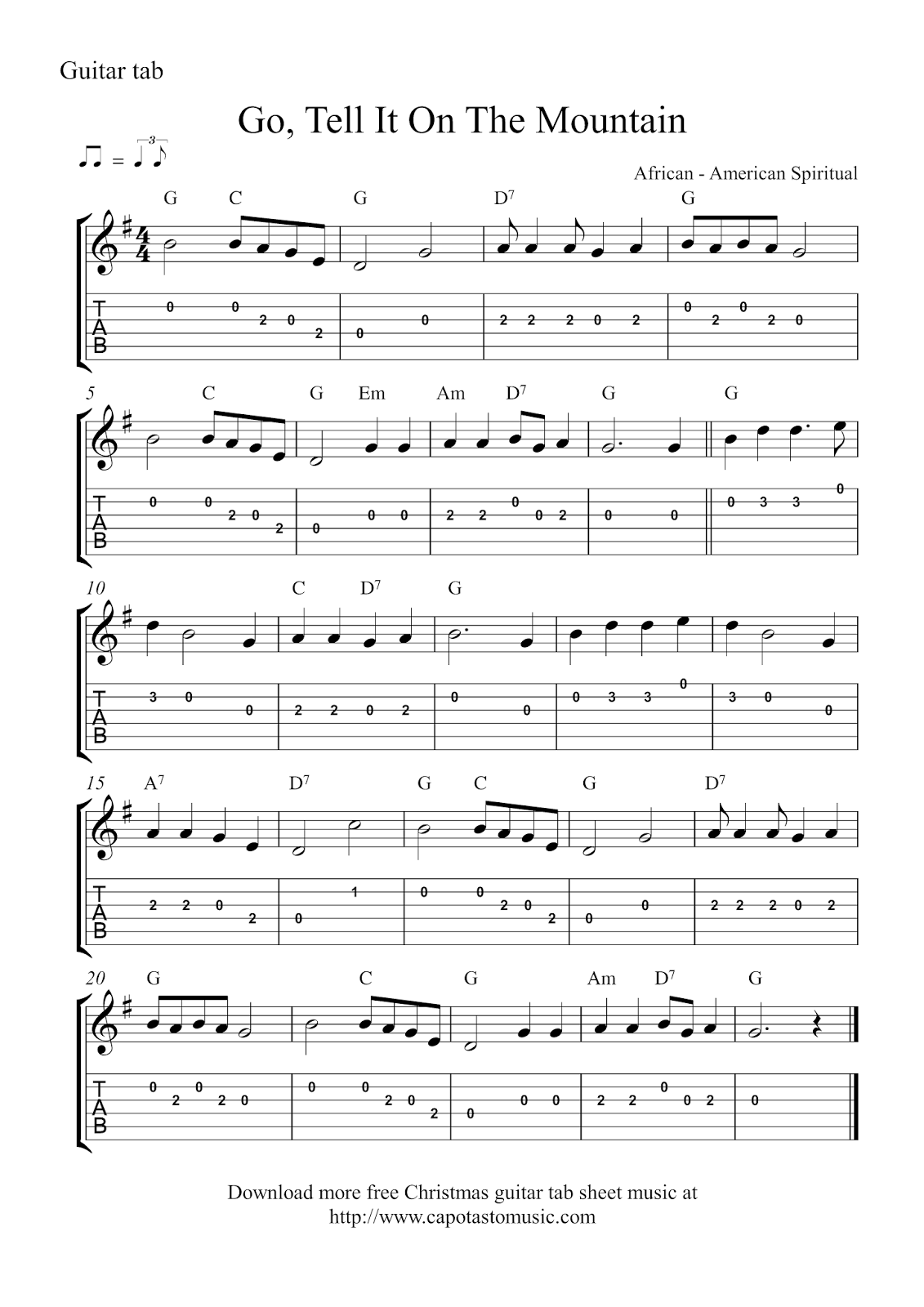 Free Christmas guitar tablature - Go, Tell It On The Mountain