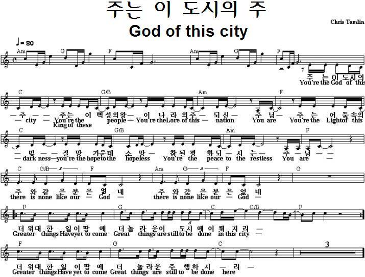 찬양악보/영상/가사/코드별모음/찬양콘티 :: 주는이도시의주(God Of This City)(악보/영상