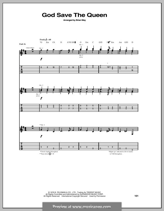 God Save the Queen: Chords, Sheet Music, and Tab for 6