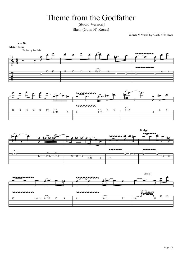 Slash Godfather Theme Guitar Lesson Tabs Full Song with