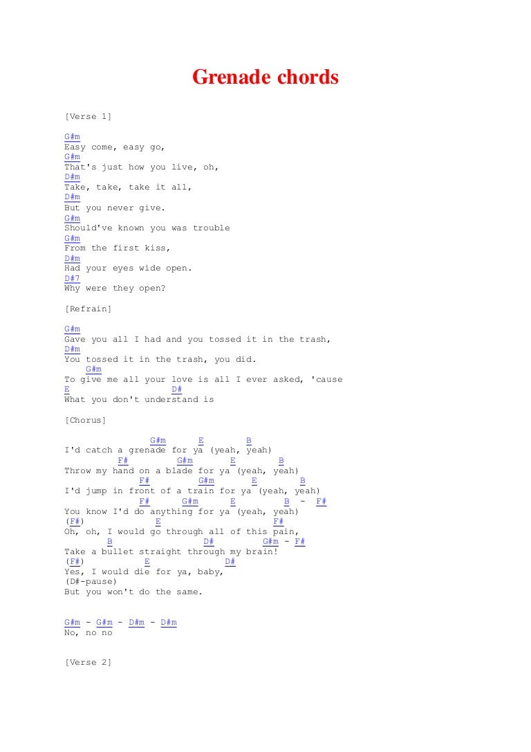 Grenade - Bruno Mars (Lyrics) Chords - Chordify