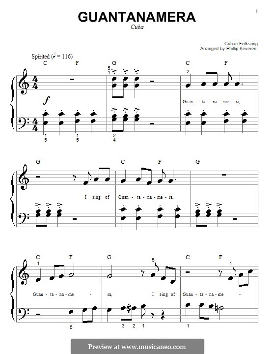Pete Seeger "Guantanamera" Sheet Music (Piano Solo) in F