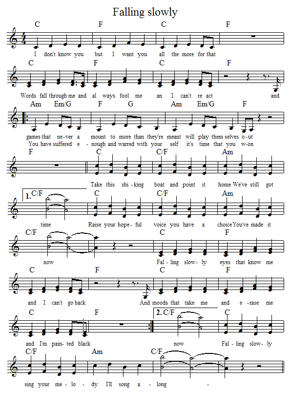 "Falling Slowly" Sheet Music - 18 Arrangements Available