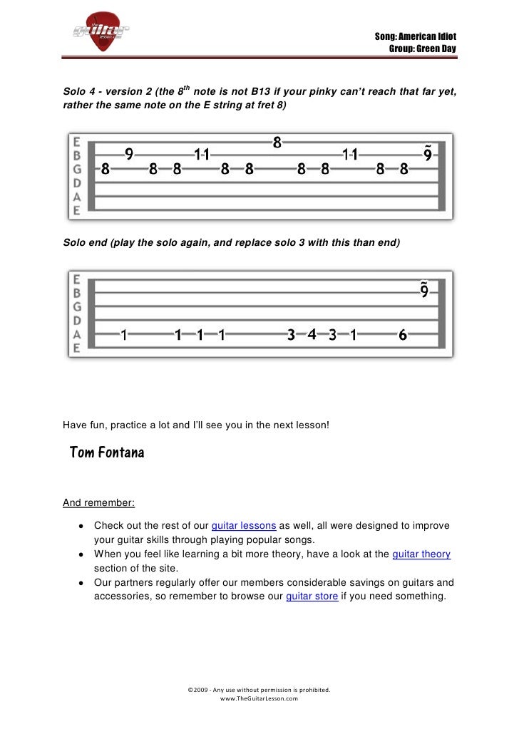 Green Day - American Idiot SOLO Guitar Lesson (With Tabs