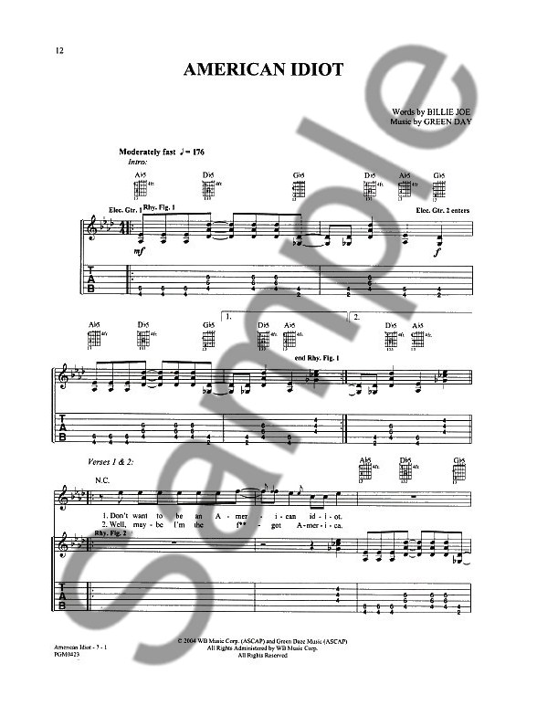 American Idiot (Guitar Chords/Lyrics) - Print Sheet Music Now