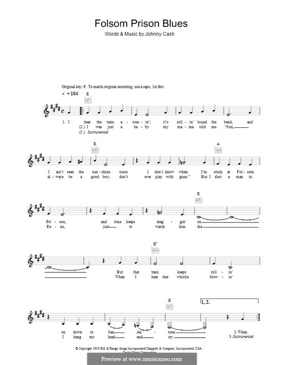 "Folsom Prison Blues" Sheet Music - 9 Arrangements