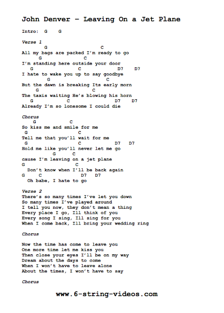 Guitar Tabs: Lyrics And Chords For: Leaving On A Jet Plane