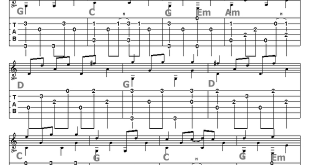 Guitar Tabs: Tab Sheet For: Puff The Magic Dragon.