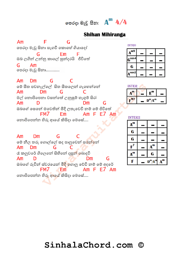 Perada Mawu Sina Guitar Chords | Sinhala Guitar Chords