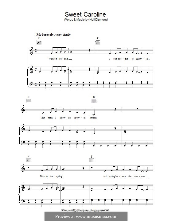 Sweet Caroline by N. Diamond - sheet music on MusicaNeo