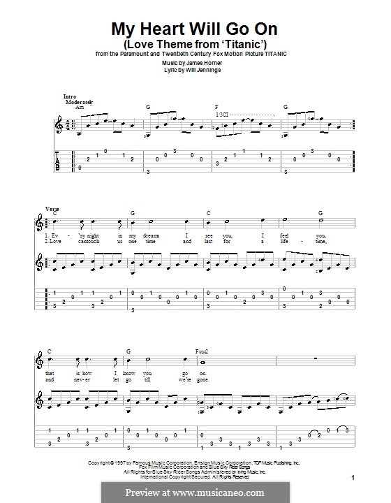 My Heart Will Go On for guitar. Guitar sheet music and tabs.