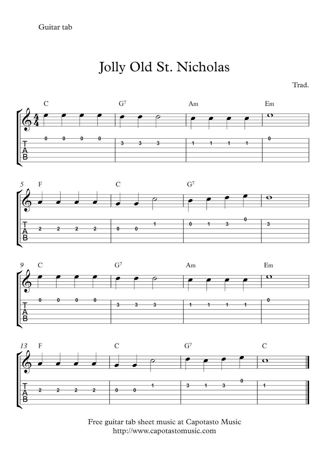 Jolly Old St. Nicholas - Free Christmas guitar tablature