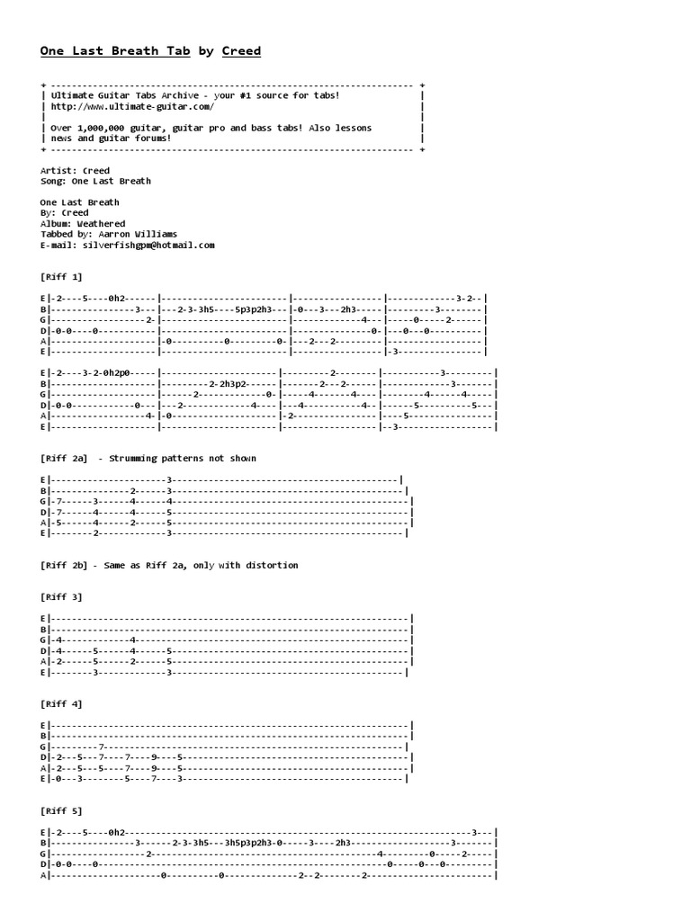 One Last Breath Tab by Creed Tabs Ultimate Guitar Archive
