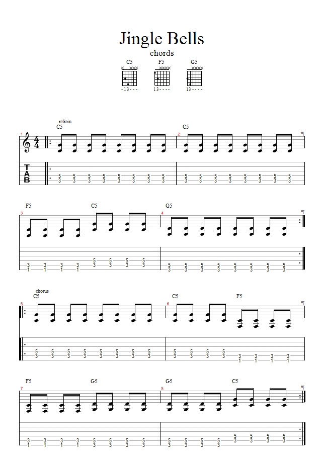 Jingle Bells Guitar Tabs, FREE Kids Sheet Music for Christmas!