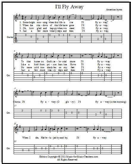 Hymn I'll Fly Away for guitar with easy guitar tabs, plus
