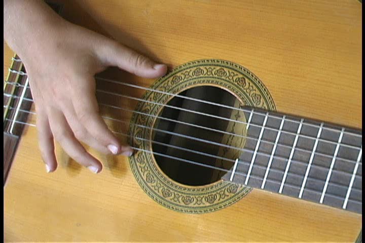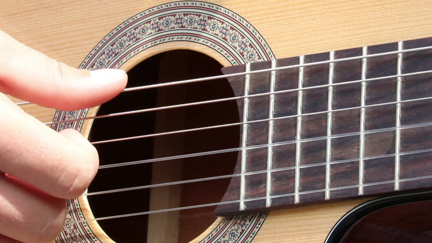 Plucking Strings On An Acoustic Guitar Stock Footage Video