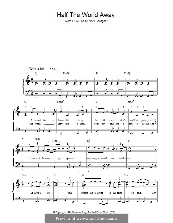 Half The World Away Sheet Music | Oasis | Piano, Vocal