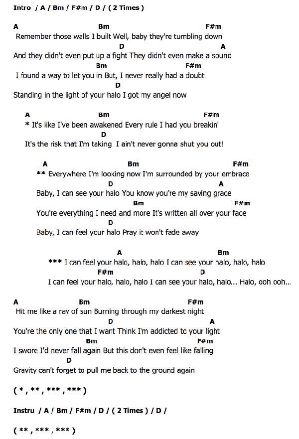 คอร์ด เนื้อเพลง Halo Beyonce Chordza | คอร์ดเพลง คอร์ด