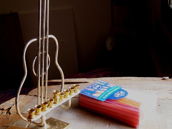 Modernist Guitar Hanukkah Menorah Candelabra Traditional