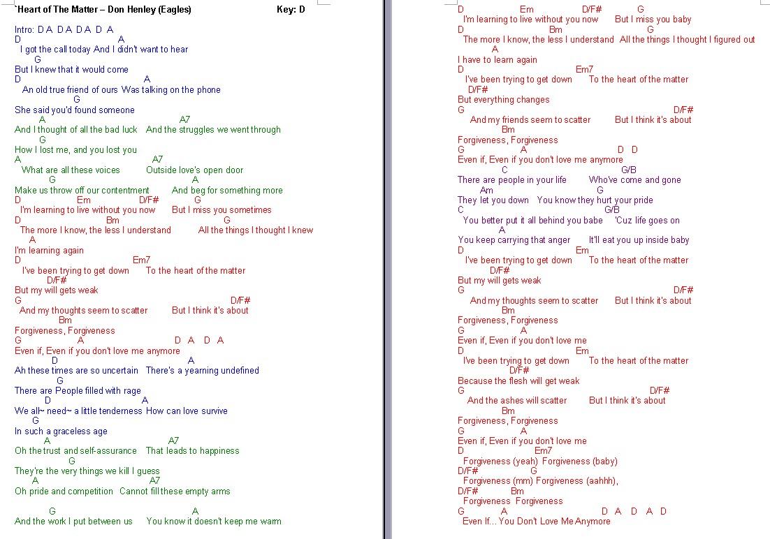 The Heart Of The Matter Tabs The Eagles Chords Free Tabs